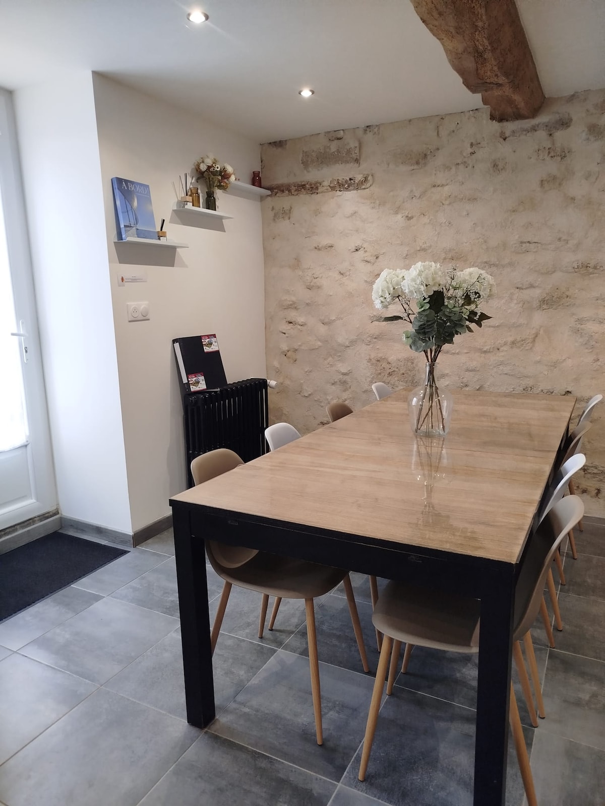 House completely renovated in 2019 on a small street ending in a large green space. It can accommodate 14 people (3* rating for this capacity by the French tourist offices) 4 bedrooms and 2 bathrooms with toilet upstairs, living rooms on open kitchen on the ground floor, living room, back kitchen, 2 toilets. Enclosed garden, terrace, garden furniture, BBQ. Shared outbuilding with another cottage offering fun activities (table tennis, badminton, foosball, outdoor games)