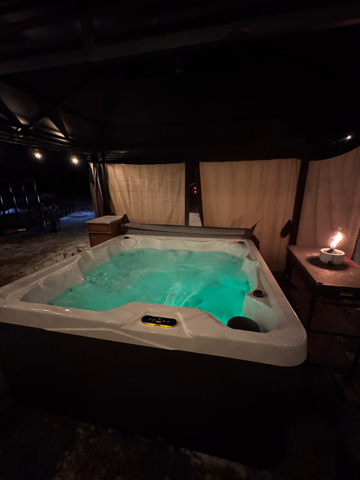 Indulge and unwind in our brand new fully loaded luxe Glamping Dome! We added a little touch of luxury, and rustic camp feel. Enjoy your stay! During your stay, you will have private access to Canada’s fanciest top-line Hot-Tub spa, the Hydro Pool Model 395 CLIMATE🌞❄️ This Dome is equipped for any sort of Canadian climate! Featuring a Mini Split for Heating/Cooling, & Heated Flooring (not in use during summer times) for those brr cold winters