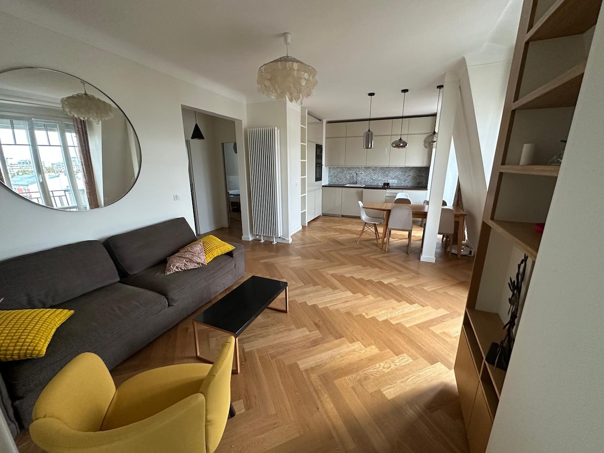 Welcome to our elegant 63 sqm apartment, ideal for 3 people, located on the 2nd floor with elevator of a characterful stone building. Bathed in light thanks to its large glass windows and balconies, it offers a warm and soothing setting. Its sleek design and refined furnishings combine comfort and style. A peaceful and convenient place, perfect for discovering Paris while enjoying a green and relaxing setting.