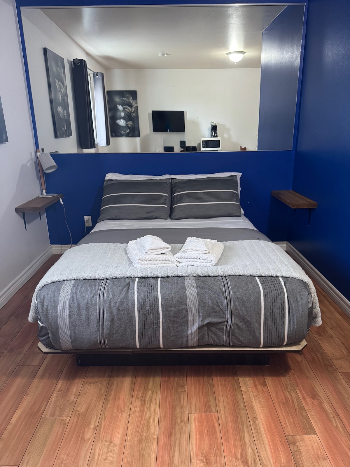 Appartement douillet situé près des grands axes routiers de la ville de Québec, à 15 min en voiture du Vieux Québec et est situé près de l’aéroport À 5 minutes des Galeries de la Capitale (1 lit queen et un divan-lit) Cuisine équipée au complet/ double insonorisation Stationnement gratuit dans la rue Borne de recharge électrique disponible sur demande Accès en voiture recommandé WIFI-HELIX TV-NETFLIX (votre compte) ARRIVÉES et DÉPARTS INDÉPENDANTS Numéro d'établissement CITQ: 310846