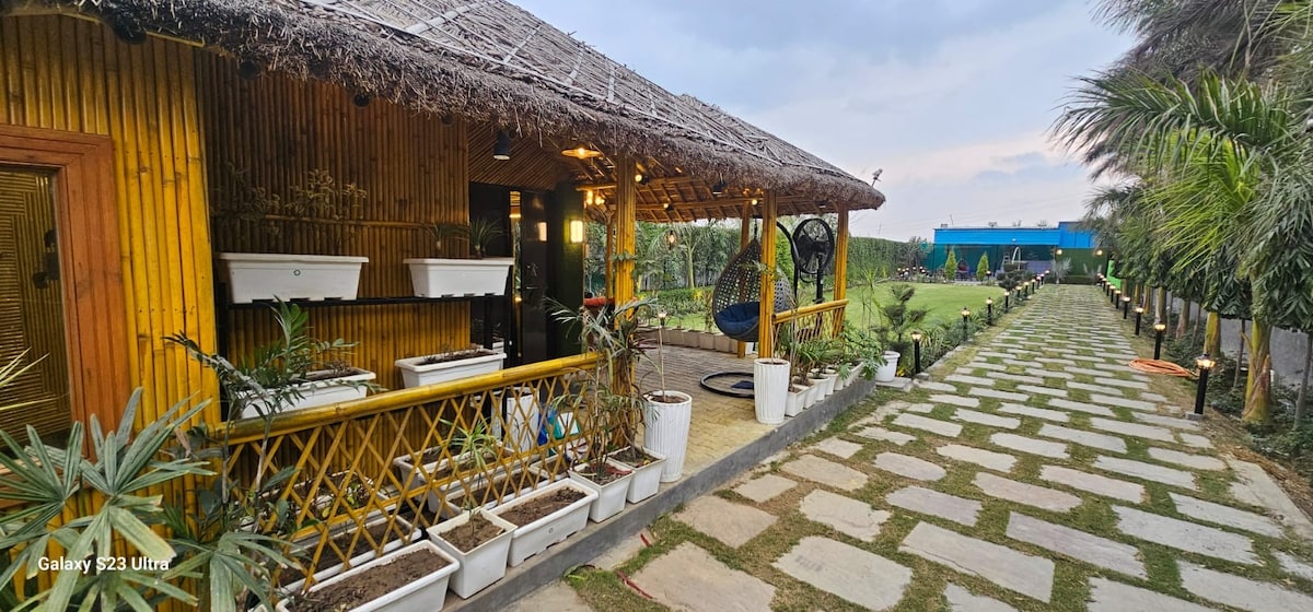 Experience the tranquility with a stay at our luxury Pure Vegetarian farmhouse just a 30 mins drive from Delhi. Surrounded by fields and nestled in lush greenery, our tranquil abode offers the perfect environment for relaxation and connection with nature. With cozy amenities and ample space for gatherings, our farmhouse is ideal for creating unforgettable memories with loved ones.