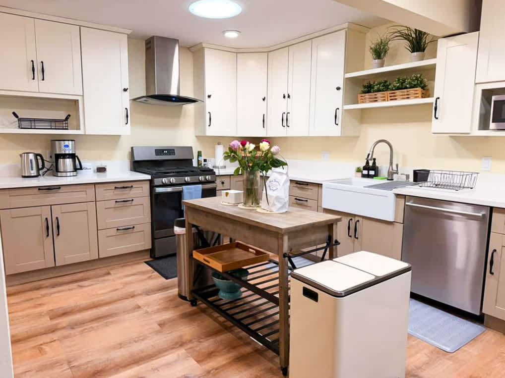 This hotel-like home has been professionally renovated and designed to maximize the comfort, convenience and enjoyment of your stay. The kitchen has a huge WOW factor w/ stainless high-end appliances, fully stocked, ideal for cooking, entertaining, or baking. Indoor/outdoor living w/ double french doors that both open up to the beautiful backyard space complete with patio furniture, BBQ and firetable, ideal for enjoying our amazing CA weather. Smart TV's in every room for those Netflix nights!