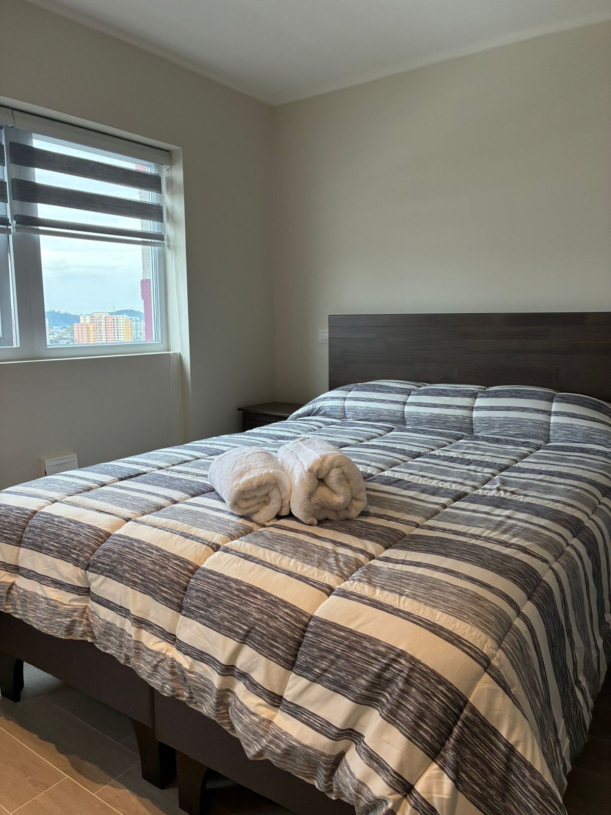 Excellent apartment with a beautiful view of Laguna Tres Pascualas, across from Universidad San Sebastián and steps away from downtown Concepción. Fully equipped with a double bed, Smart TV, Wi-Fi, desk, and a sofa bed in the living room, accommodating up to 3 people. Kitchenette with oven, burners, dishes, cooking utensils, kettle. Bathroom with all its equipment incorporated (towels, soap, shampoo).