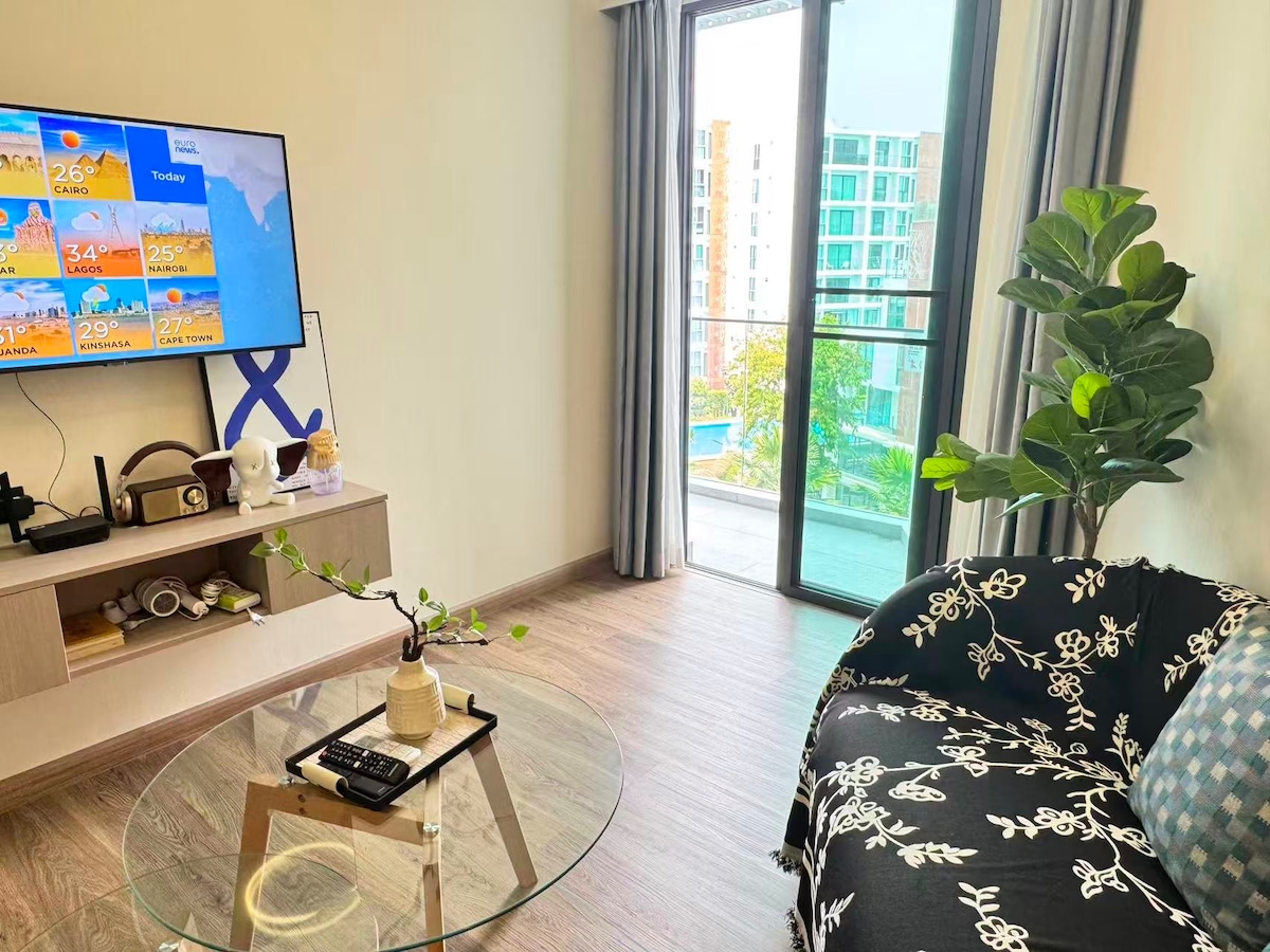 Note: The living room is triangle-shaped, so it is rented at a special price.But the area is larger than all the one-bedroom homes in the neighborhood 1. Chiang Mai largest and most complete community: Holiday-style apartment in Chiang Mai with three swimming pools with a total area of 1500 sqm, as well as a gym, sauna, children's lego room, shared kitchen, shared meeting room and children's musical instrument practice room.All these facilities are free to use during your stay 2. Prime Location: The apartment is right next to Central Festival, the biggest and only comprehensive mall in Chiang Mai, just 5 minutes walk.The mall brings together numerous restaurants, huge supermarkets and rich clothing brands for a convenient living experience 3. Great price, flexible services: In order to ensure the best price for each customer, we do not provide daily cleaning service, thus avoiding additional rates due to additional services.Affordable price for every customer.For cleaning service, you can contact me at any time, detailed price information is attached to the room photo.In addition, the bedding we provide for our customers, all washed by the local professional washing agency, Anantara, ensures hygiene and comfort.The room is free of charge for living items such as mineral water etc 4. Plenty of property options: We manage a plethora of properties and can easily find the type of place that suits your needs.If you do not find a satisfactory option in the existing listing, please contact us and we will find you a better fit.You can also reach us anytime if you have a need for a long stay