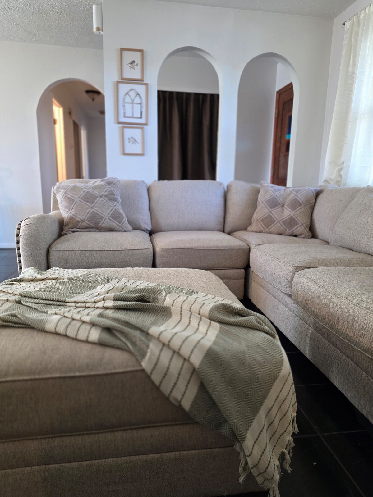Modern 2-bedroom home in Rio Rancho. Everything was remodeled. 2 bedrooms with queen beds, and a fully non-smoking space. A small third bedroom I keep private as an owner's closet. Adjacent to Albuquerque, near Petroglyphs, Sandia Mountain Tramway, and about an hour+ to Santa Fe. Even though the entire home is "one level," there are two steps to a sunken living room. Free 50-amp EV charging outlet L2 (NEMA 14-50) so bring your own charging cable/adapter. (If you forget it, let me know.)