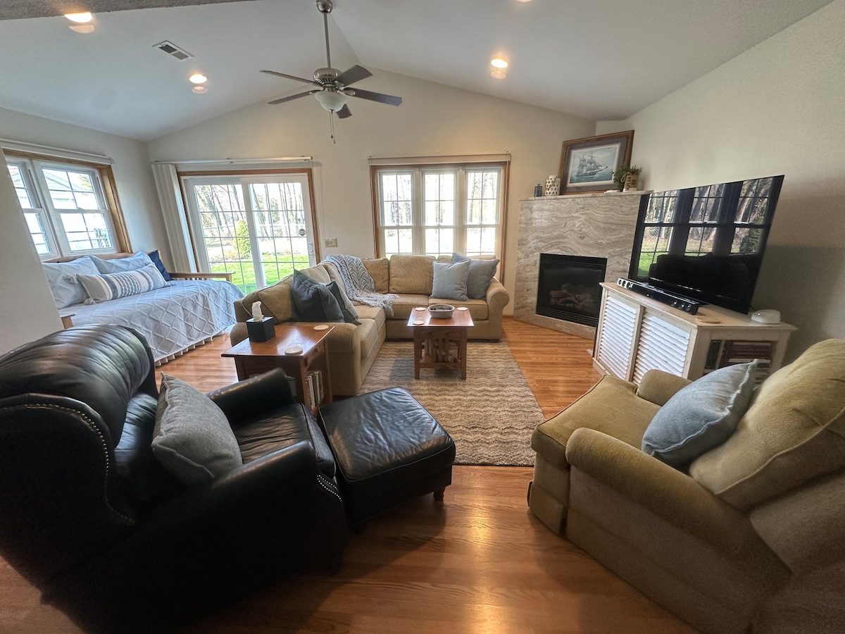 Spacious ranch home in upscale, quiet neighborhood with a country setting just down the road from Erie County's Route 250 & minutes from Cedar Point & Lake Erie Islands. Stunning golf course views, spacious, clean rooms, large backyard, giant tv, plenty of room for a large family. Skip the hotels & prepare meals in your own kitchen, & have the family all together in this home with brand new floors, paint, appliances (including washer/dryer), & furniture. Large driveway for cars/boats/rvs.