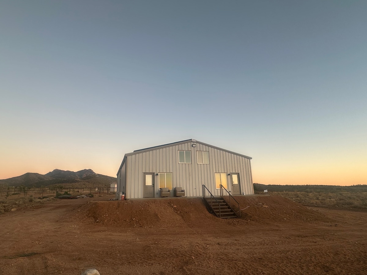 Small interactive farm guesthouse off historic Route 66, a short 15 minute drive from Kingman to the desert countryside. Enjoy the beautiful desert sunrise over the Hualapai mountains from your bedroom. Relax on the porch while watching the sun set over the Black Mountains. Listen to the coyotes in the background while you stargaze on the porch. Enjoy meeting the friendly horses, goats, barn cats, sheep, and livestock guardian dogs. Babies present based on the time of year. Pet & family friendly