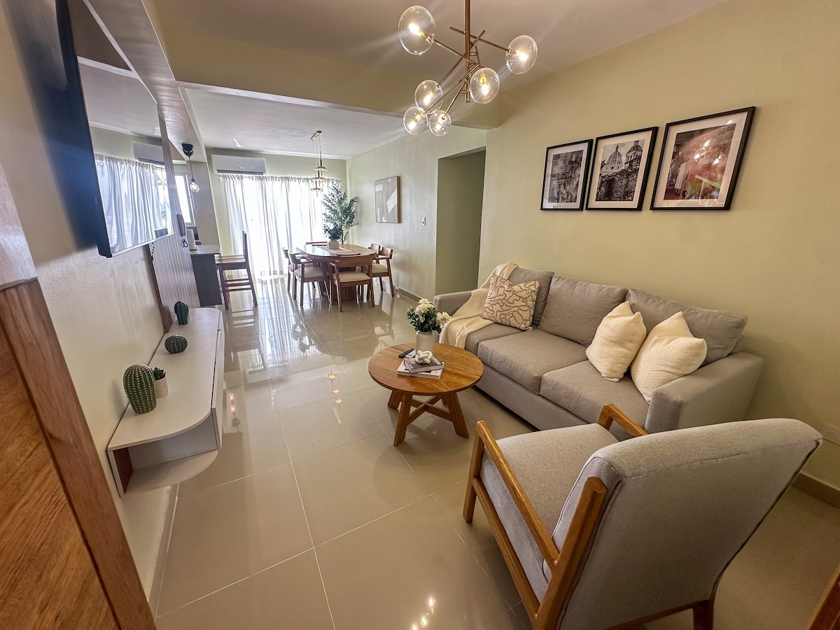 Enjoy this elegant and modern apartment located in Santo Domingo Norte with easy access to malls, banks, supermarkets, restaurants, everything you need to feel comfortable, quiet and enjoy unforgettable days. This beautiful apartment has 3 bedrooms and 2 bathrooms, a living room, kitchen, dining room, laundry area, and balcony. You can enjoy a beautiful social area located on the rooftop of the building with a Jacuzzi, gym, BBQ, covered and uncovered terrace, multi-purpose room