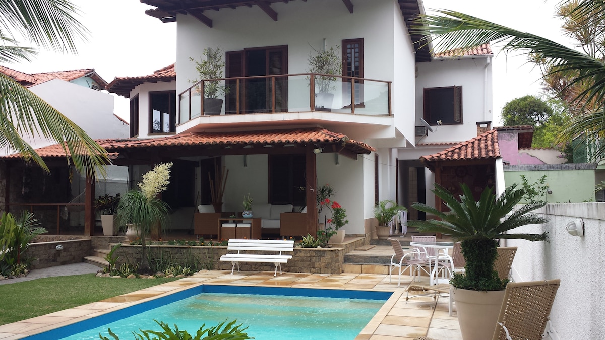Détendez-vous dans ce logement calme et élégant, à la vue imprenable sur le Pain de Sucre et la baie de Rio. Nichée sur la colline de Santa Teresa et juste au dessus du quartier de Laranjeiras, notre maison vous permettra de vous reposer complètement, en famille ou entre amis, au milieu d'une carte postale Carioca. Si certains souhaitent travailler, un espace leur est dédié. Mais là aussi, là vue est incroyable. Un gardien et une employée de maison travaillent quotidiennement à la maison.