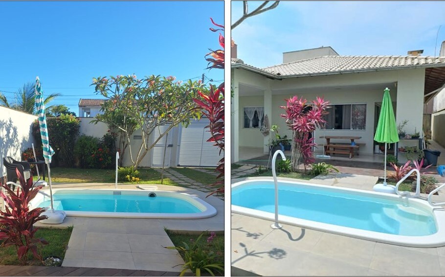 Close to the beach, fun and privacy. The area has 750m2 (2 corner lots); 3 bedrooms (3 split air), 1 of which is an outdoor suite Built-in granite and glass cabinets (bedroom and kitchen); 60m2 gourmet area with wood-burning stove, barbecue, wood-burning oven, granite table with jaqueira benches, foosball area; Swimming pool with waterfall, whirlpool and lighting: 100m from Tamar Project. 300m from Guriri Beach. 150m from the beach. Loud music, family-friendly and quiet.