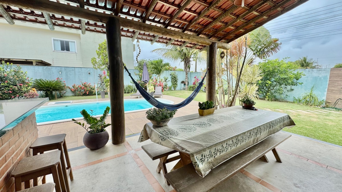 Comfortable duplex 1.3 km from the beach. Perfect place to relax, quiet and peaceful street. The space offers 3 air-conditioned bedrooms, Wi-Fi, a 50" TV; Netflix, private pool, barbecue area, ideal to comfortably accommodate up to 8 people. It also has an outdoor stove, freezer, barbecue, clay pots, plow disc, among others, ready for conviviality at the table, providing practicality and entertainment. All of this with you in mind.