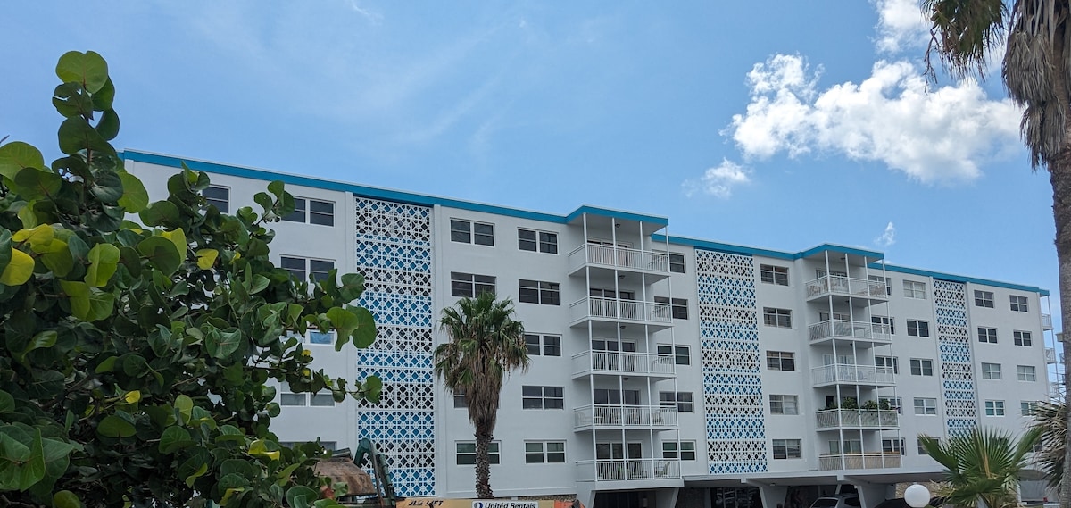Steps from the sand! Upscale and spacious 1 bedroom, 1 bath suite. Breathtaking ocean views from every angle including triple glass slider, balcony, and oversized bedroom windows! See and feel rocket launches from the private balcony. Perfect for aquatic adventurers or close-knit friends. Tastefully appointed and newly renovated, expect an idyllic location for on-the-water fun with luxury for up to 4 guests Near Disney/Orlando Airport, Kennedy Space Center, Port Canaveral, Cocoa,Melbourne