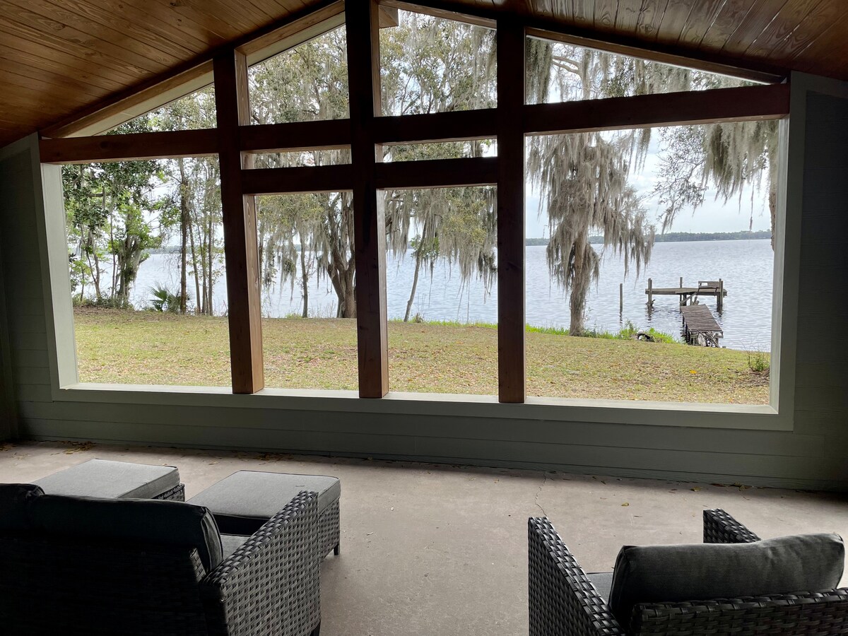 LONG TERM VISITS WELCOME....RELAX on the St.Johns River Bass Capital of the World! Take a boat ride to the Springs! Fishing, Shrimping, Kayaking, or swimming. Amenities: Stainless Steel Grill, Fire Pit, porch swing, boat Dock, deck w/2 picnic tables. KAYAK’S offered: for 3 Persons . Full kitchen & cooking, expresso machine Bathrooms w/walk in shower Owner Suite has Spa Soaking tub for 2. Pets allowed: rules are sent after your booking. Pet fee is $75 per pet for the visit NOT per night.