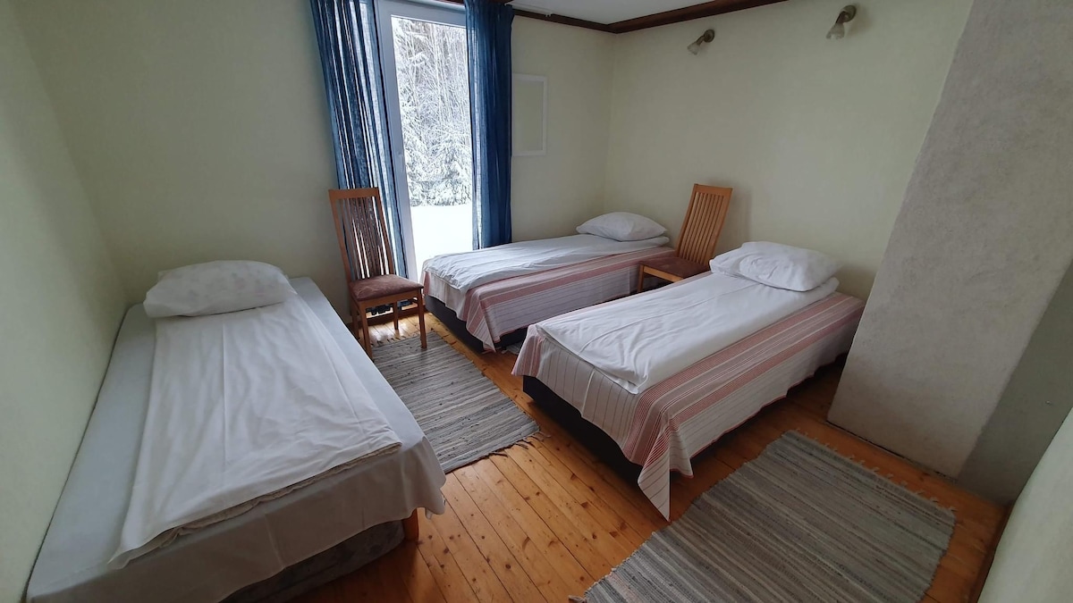 A room for 2 (+ a child. The childrens bed 140cm) in a private house with a garden in Nõmme district is only 8 km from city center and is situated in beautiful nature far from big highways. Attention! I have two more rooms, so there is actually space for 7 people, if those two rooms (3+2 people) are not booked by other guests.