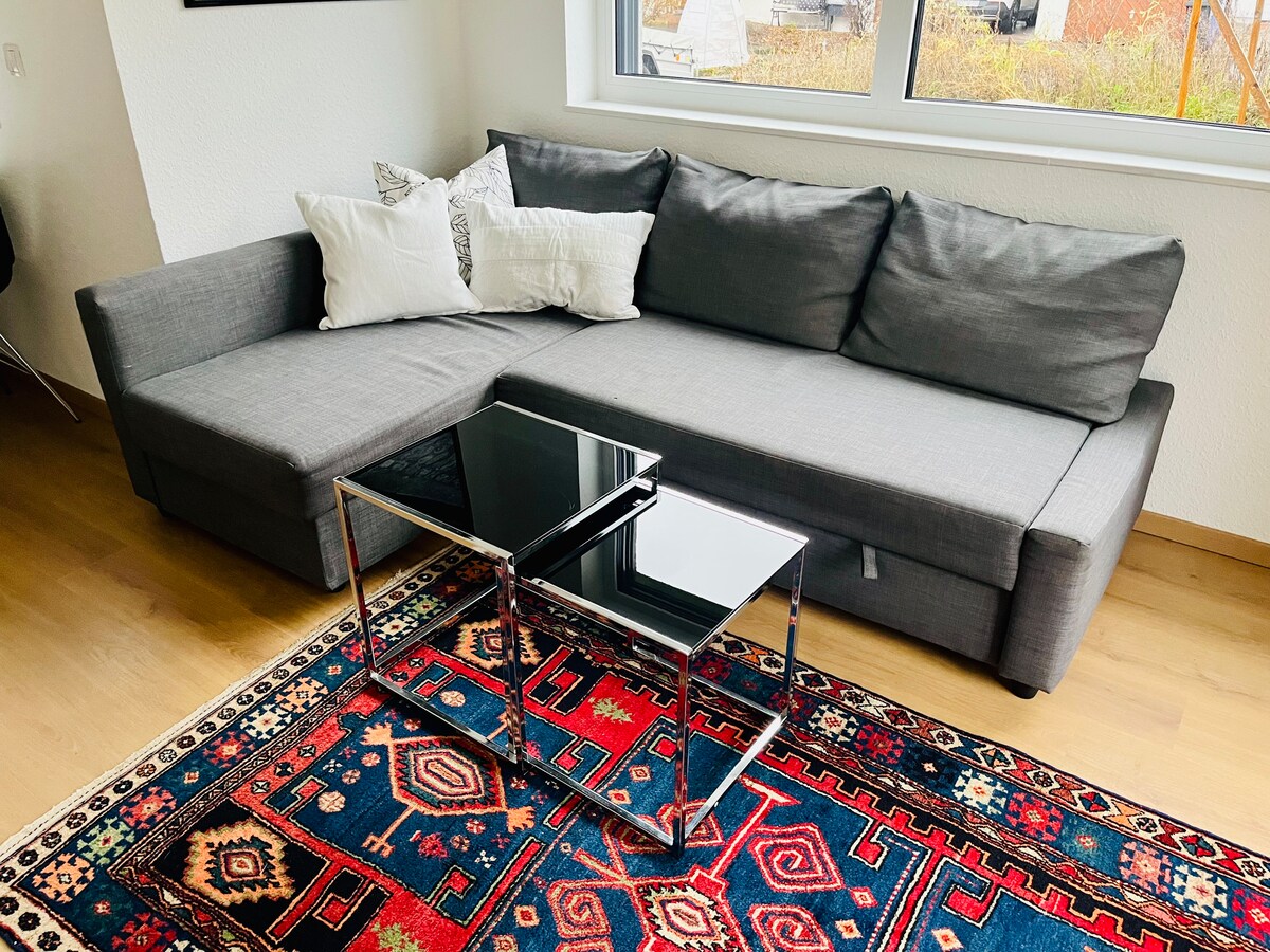 Die Wohnung befindet sich im Keller meines Hauses. Sie nutzen die Wohnung nur für sich und haben auch einen eigenen Eingang. Der Wohnbereich ist ein helles Zimmer und hat eine Fläche von ca. 26 qm². Das Sofa dient als Schlafmöglichkeit und hat eine breite von 1,40 m und reicht für 2 Personen aus. Auf dem Sofa befindet sich eine Schaumstoffaufpolsterung von ca. 6 cm. Als weitere Schlafmöglichkeit dient ein normales Bett. Parkplätze sind in unmittelbarer Nähe ausreichend vorhanden.