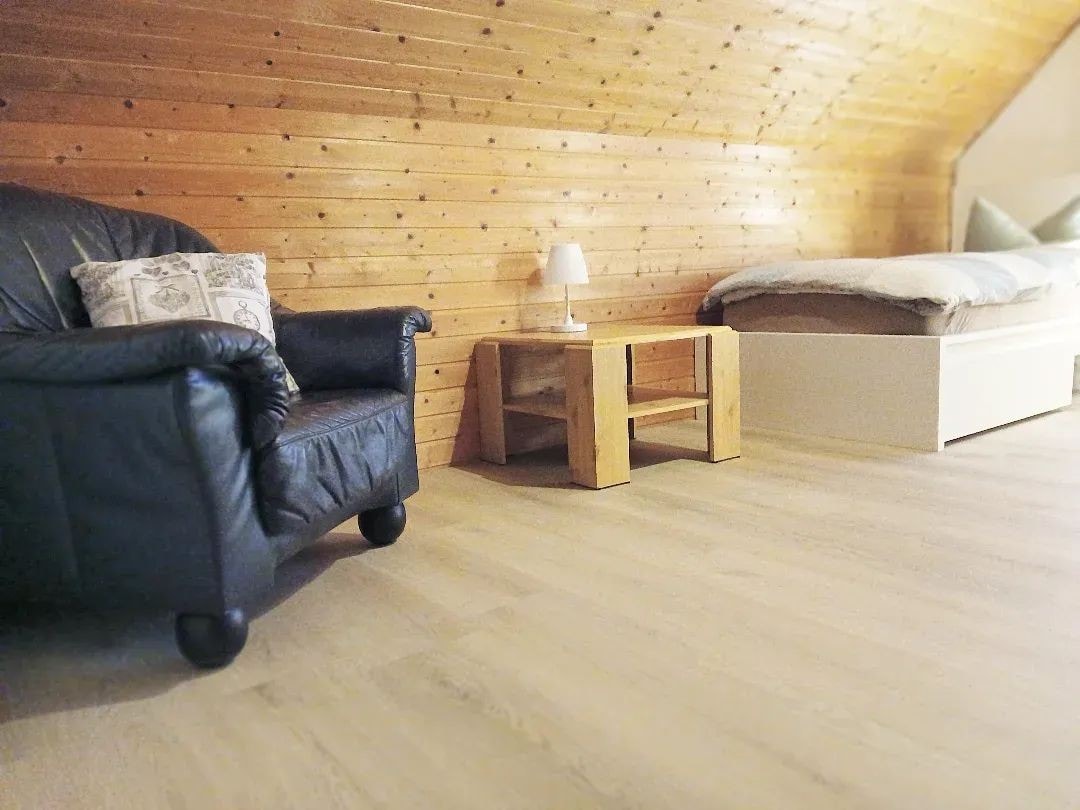 The Storchenblick is a spacious apartment that can accommodate up to 4 adults and 2 toddlers/babies. Here you will find a bedroom with a king size bed, a gallery also in the bedroom with a double bed and a sofa bed in the living-dining area. In addition, you have a bathroom with a bathtub and shower. The wood-burning fireplace creates a special atmosphere. From the kitchen you can step out onto the terrace. There you have a beautiful view of the Storchennest.