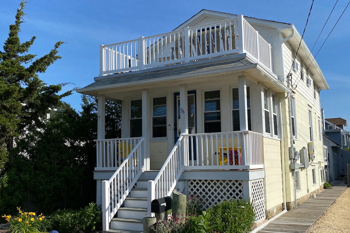 Our home is a perfect beach getaway. Located in beautiful family oriented Seaside Park with view of the bay and spectacular sunsets. Short walk to the ocean with handicap access ramp. Large white sandy beaches. Outdoor space includes deck, dining table and propane grill. Outdoor Shower. Central A/C, Wi-Fi, washer/dryer. NO SMOKING in home or on property. 6 badges. Min Rental age 30. Note: Linens(beds not made) and Towels included. See additional add ons - deluxe linen, bikes and beach package