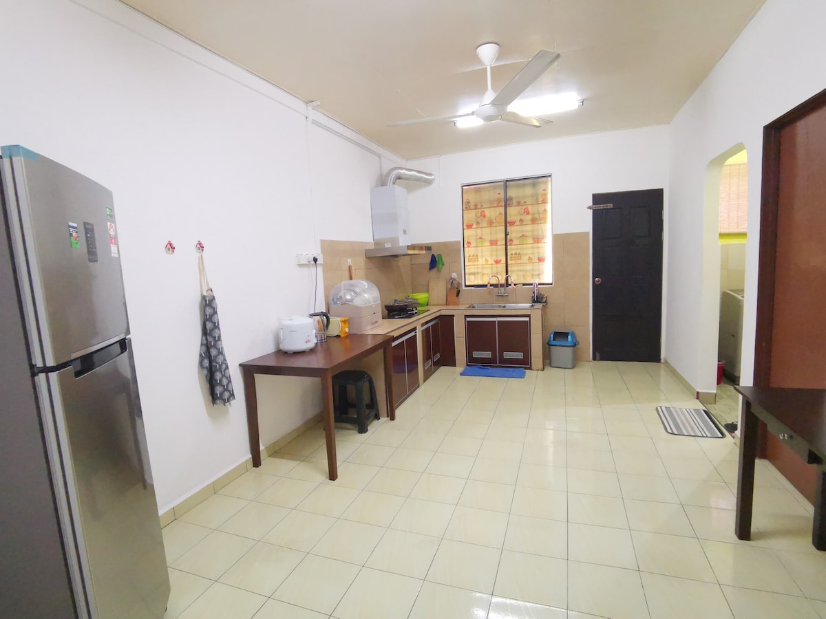屋内有四间卧室,每间都设有电风扇及空调。四间浴室,都有冷热水,沐浴用品,牙膏牙刷及毛巾供应。客厅设有网飞智能电视机&高速网络, 空调,沙发及饭桌。厨房具备了过滤冷热水机,洗衣机,冰箱,煤气炉,油烟机,电火锅,电饭煲, 蒸锅 及各种餐具 。室外还提供了烧烤炉。 We are 4 bedrooms, all included an air conditioner and fan. We have 4 bathrooms, which all have unlimited hot water supply. We also have a living room, which had sofa & dining table, smart-TV with NETFLIX, WI-FI, and an air conditioner. While our kitchen had stoves,electric hot pot, water dispenser, refrigerators,washing machine. Outside, we had BBQ rack.
