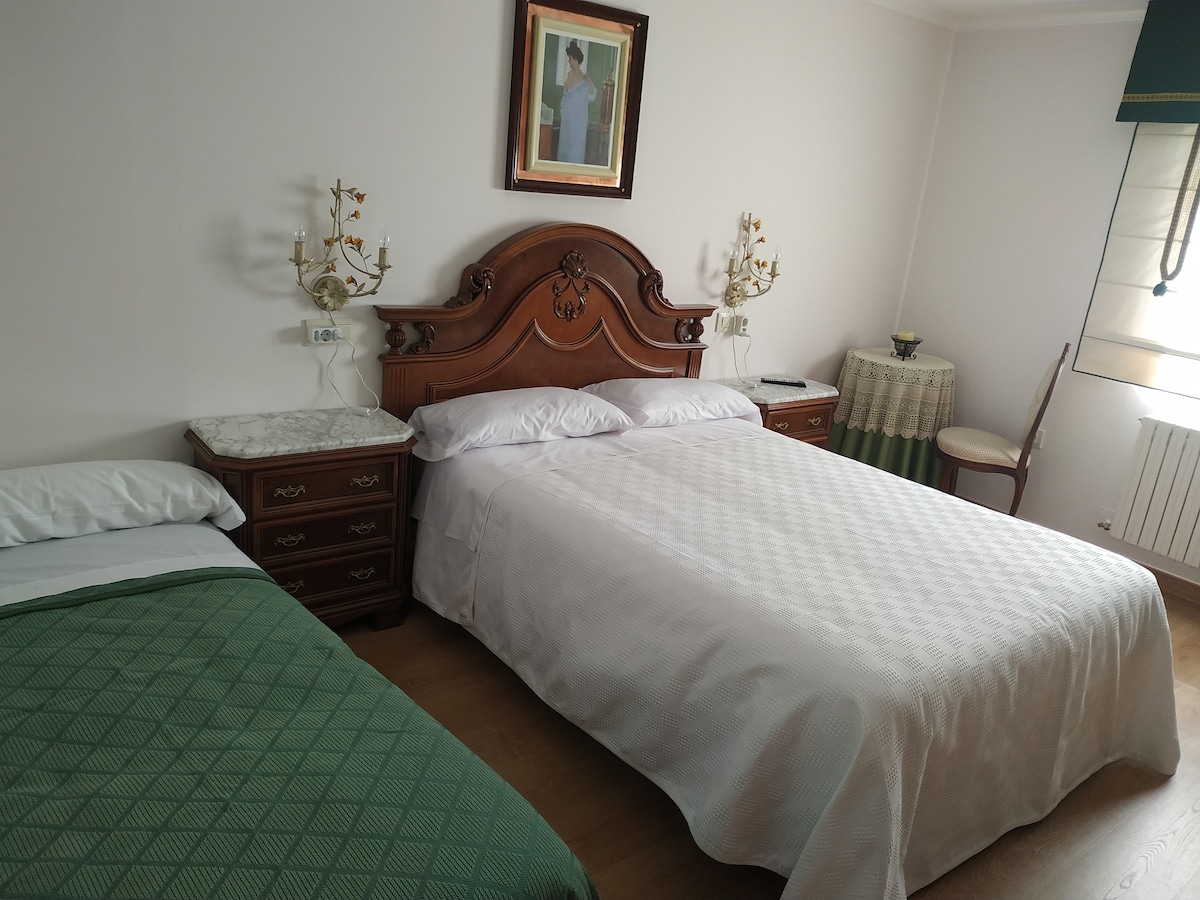 Charming boutique hotel room with two beds and an external private bathroom, one meter from the room and for its exclusive use. Located in the heart of O Cebreiro, it is cared for down to the last detail.