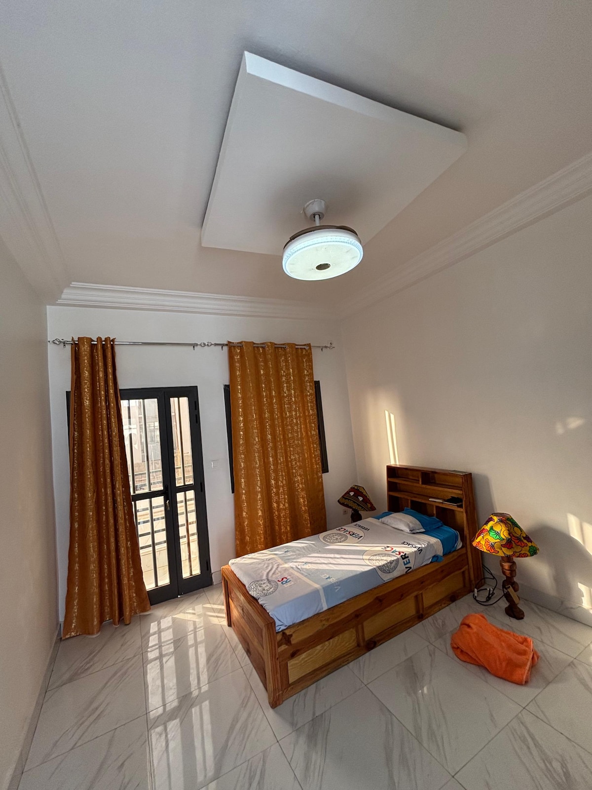 Apartment on the 2nd floor, Résidence Babacar Diop, SIPRES 2, Sud Foire VDN, opposite Exclusive Hypermarket. Modern building, elevator, generator (for common areas) and security. 2 bedrooms, 3 bathrooms, a living room with modern furniture, 50" flat screen Smart TV; high-speed Wi-Fi and a well-equipped kitchen with washing machine and dishwasher. Housekeeping service twice a week. For security, the building is under video surveillance on the main facade and lobby.