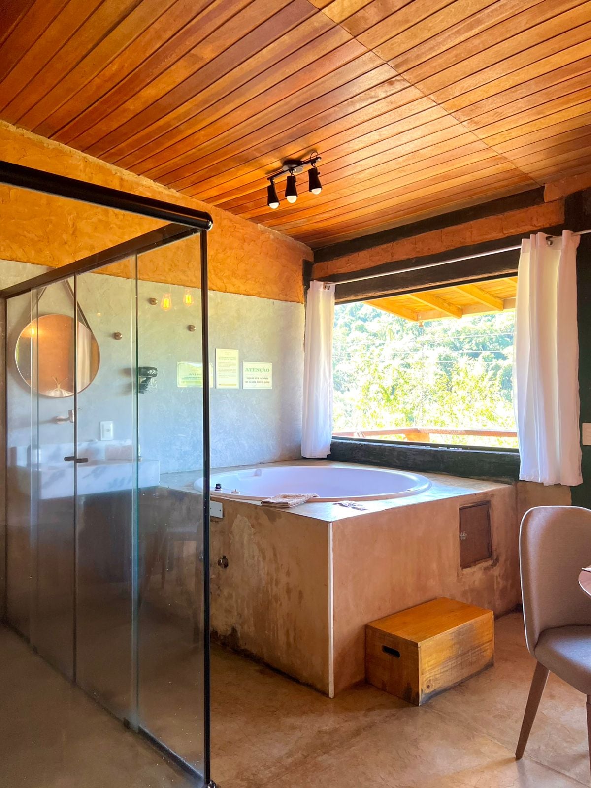 Rustic chalet in the middle of nature, ideal for up to 3 people. It has a double bed and a single bed, a suite with a private bathroom and a hot shower, a mini-equipped kitchen, a TV with channels, air conditioning and Wi-Fi. Enjoy a lovely view and direct contact with nature, with monkeys and birds nearby. A quiet and comfortable retreat, perfect for couples, small families or friends looking for rest and connection with the green.