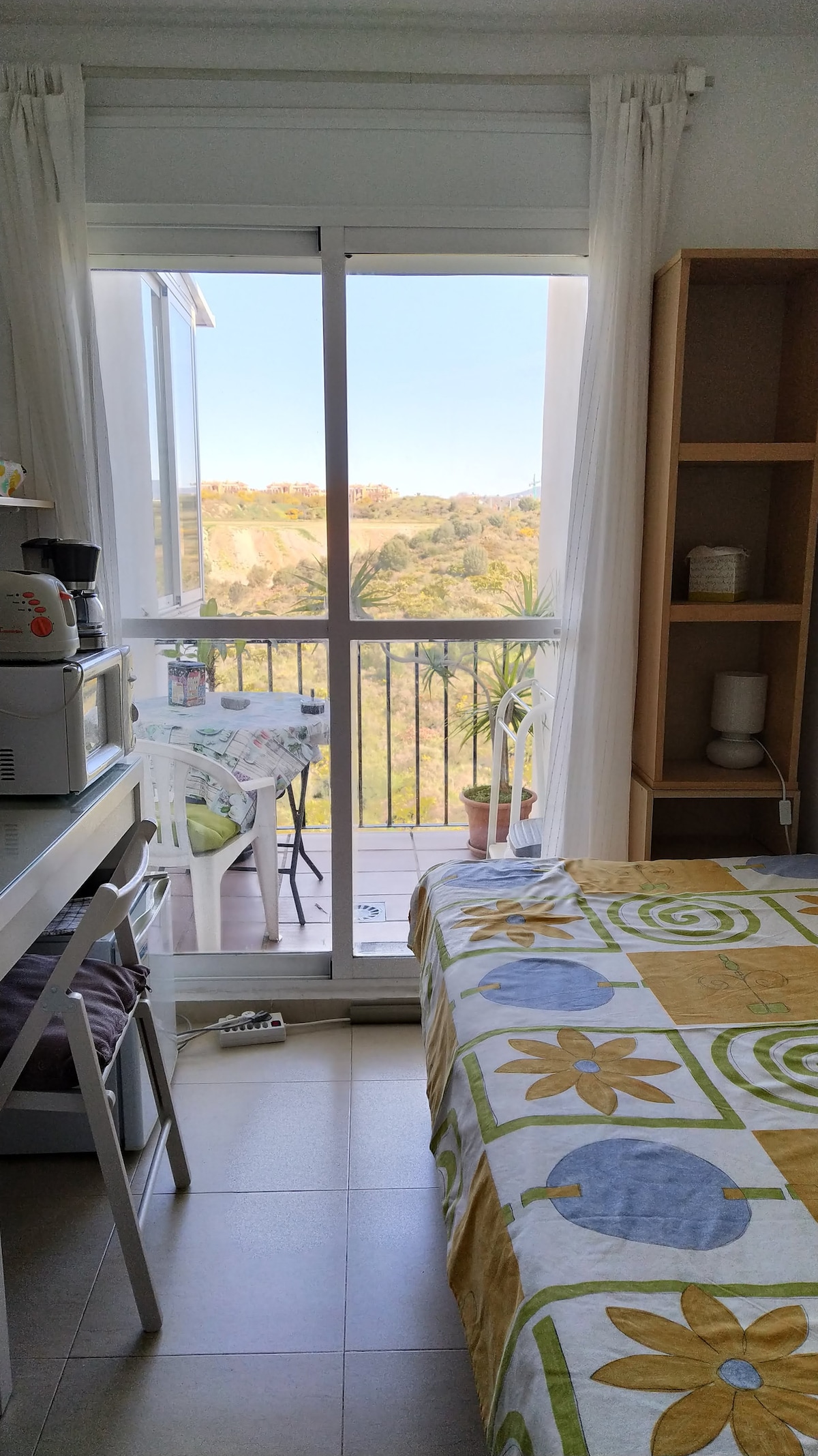 Bright and comfortable one bedroom ✨ apartment, with living room and dining area, and open balcony with partial sea views. Ideal for enjoying the sun and the Mediterranean breeze. 🌊 Located in the Puerto de Estepona urbanization, just 3 minutes walk from Playa del Cristo and very close to the marina, in a quiet and well-connected area. 🌿 Its simple style and high ceilings create a friendly and spacious environment, perfect for rest and feel at home.