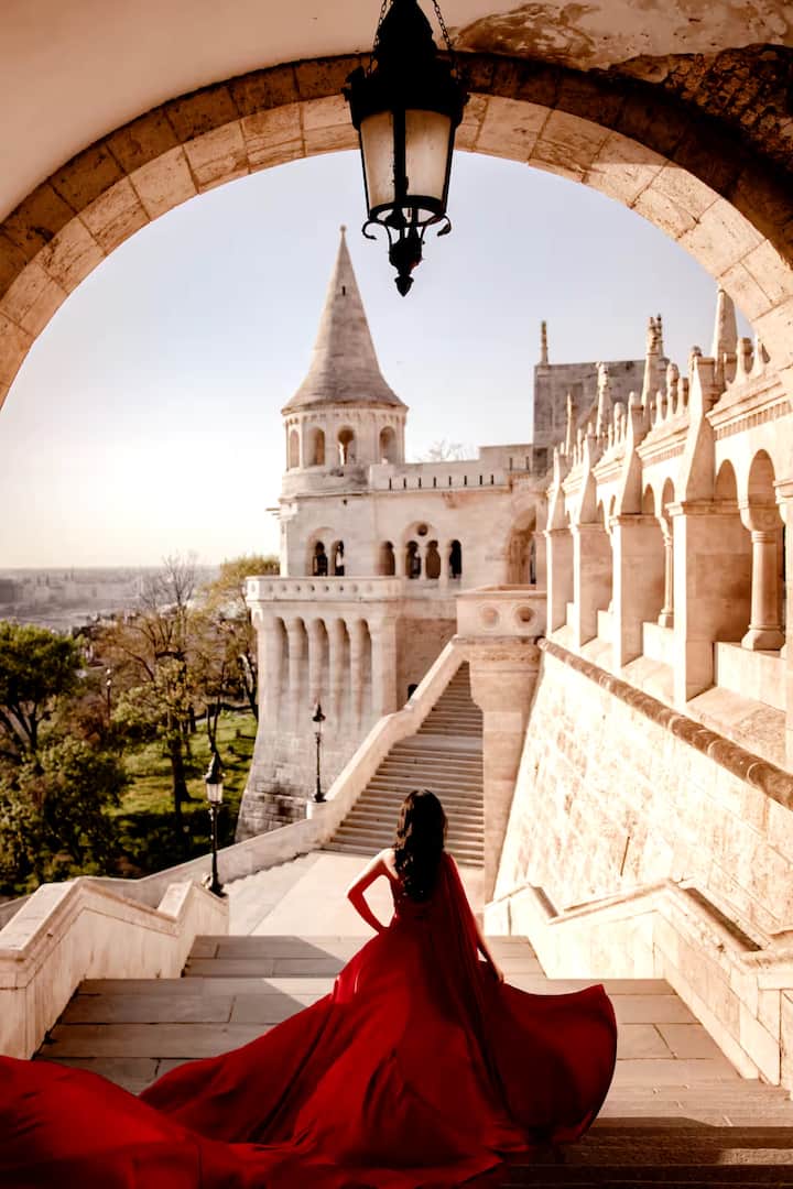 Get 100 unedited pictures within 24 hours of a photo shoot featuring a flaming red flying dress and a personal assistant who helps make the dress fly.