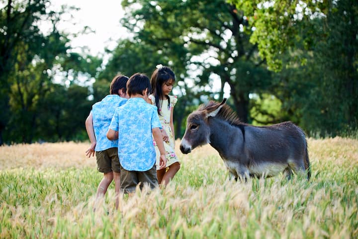 A One of a kind Portrait Session on a Farm with Farm Animals. We will get you comfortable with posing with Donkeys, Goats, Chickens, Ducks, and Guardian Dogs. These photos will be the conversation starters in your next family gathering :)