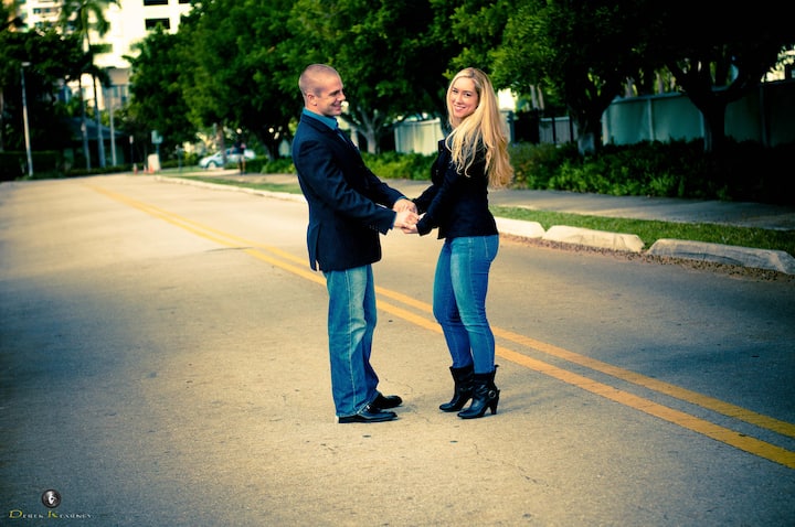 Capture vacation memories at a chosen location, such as a local beach, downtown area, or other hotspot.