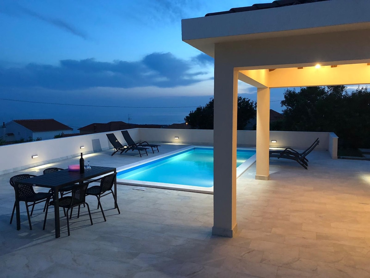 Sevid is a small charming place situated on peninsula in Dalmatia. Placed on Adriatic sea with a beautiful view of nearby islands. There is 150m of relaxing walk from home to a beach. House is surrounded with green areas (shown on pictures). It can present a real Mediteranian style, pure relaxation and comfort. It is small house that shows it´s value throughout outdoor space. PRIVATE POOL WITH COOLING/HEATING SYSTEM