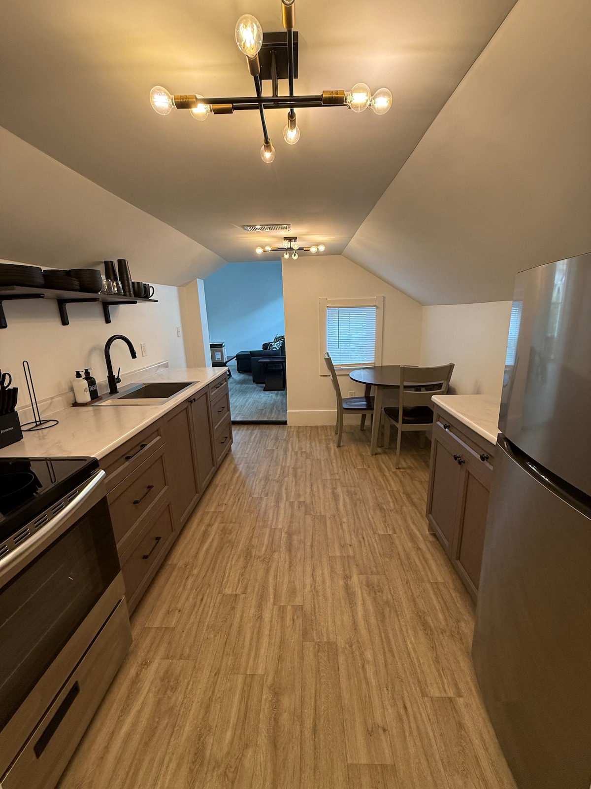 This beautifully updated modern apartment sits right on Shelbyville’s charming town square, just steps from local boutiques, cozy coffee shops, and delicious dining. Whether you're here for a weekend getaway or a longer stay, you'll love the convenience: only 12 minutes to Horseshoe Indianapolis Casino, 34 minutes to Lucas Oil Stadium, 45 minutes to the iconic Indianapolis Motor Speedway, and 42 minutes to Indianapolis International Airport.