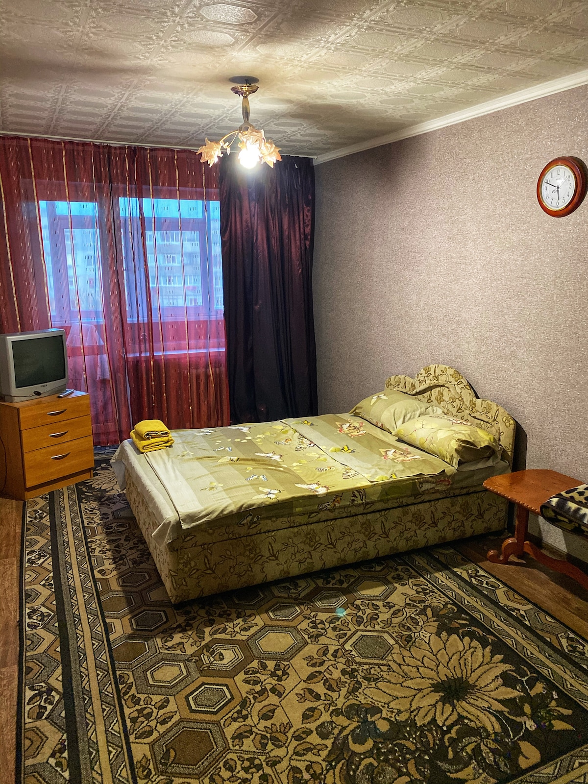 Apartament on 14th floor of a 14-story building in the old part of Kyiv, just next to Botanical garden. 40sq. m. openspace contains kitchen zone with all things you need such as stove, fridge, kettle, microwave etc. Living room zone with TV, bluetooth audio system, cozy sofa, sofa bags and cofee table. The bed zona with double side bed. As for the bathroom there is a toilet, washer and shower. And the great stunned panoramic view on the part of Kyiv help to relax.