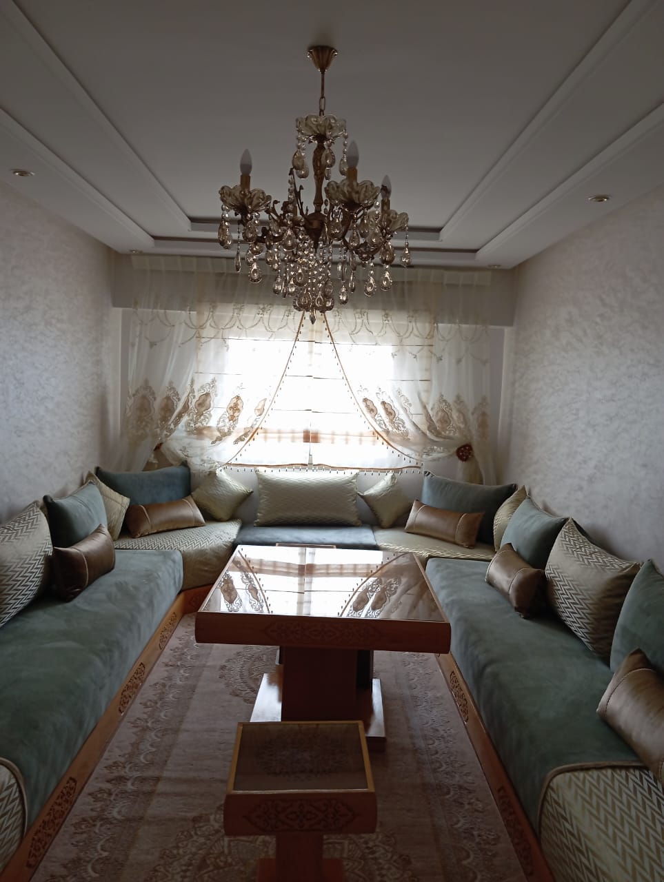 Bonjour, In the city center of El jadida, and 5 min walk to the beach, I rent my 90 m2 apartment which consists of two bedrooms, a living room, a living room, a large kitchen with balcony, a bathroom and a laundry area, This family home is close to all sights and amenities. Parking in front of the building. Welcome:)