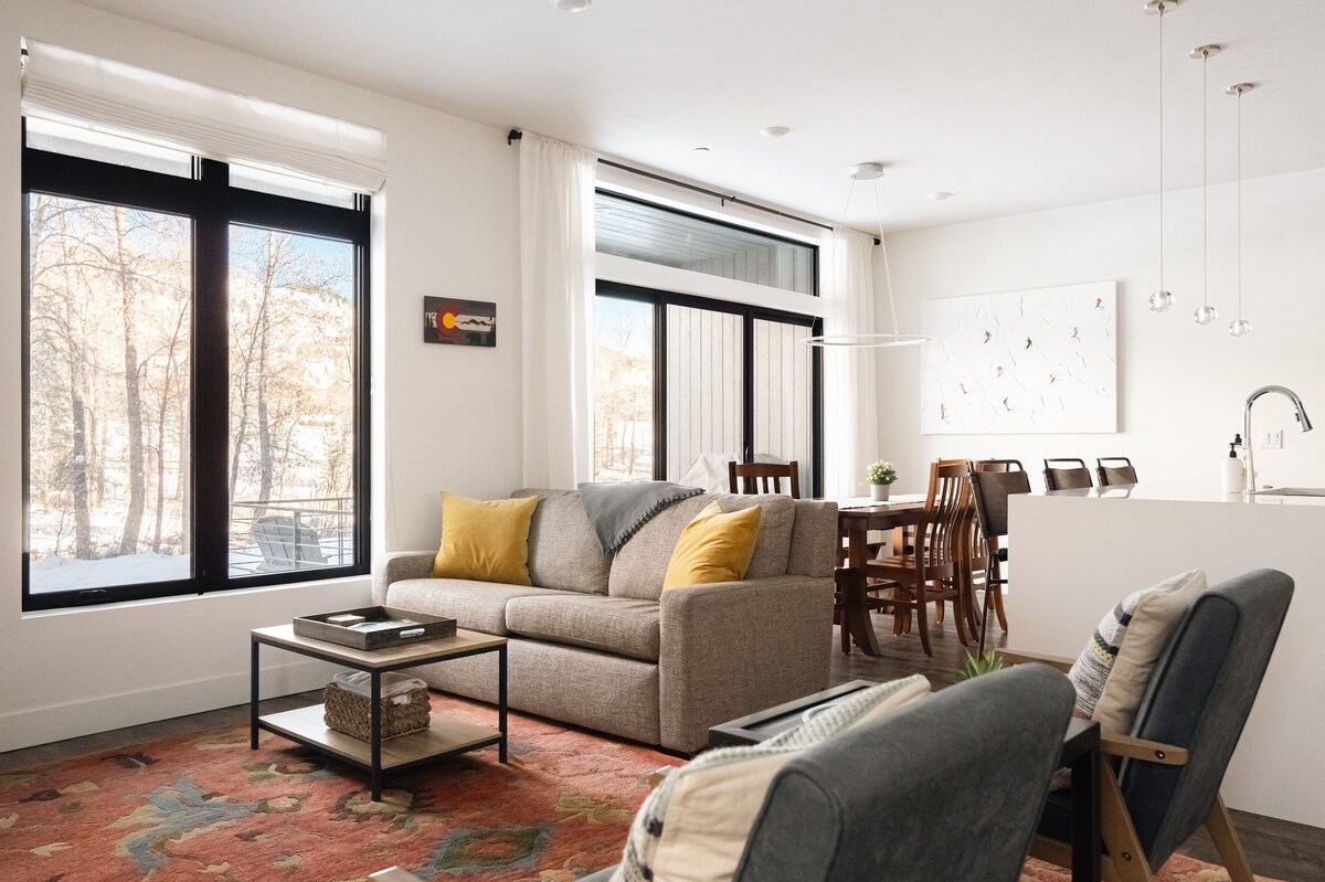 Enjoy a stylish experience at this centrally-located place on the Blue River in the heart of Silverthorne, CO with beautiful mountain views. Walking distance from 4th Street with all the bars, restaurants, co-working space and entertainment to relax after a day of skiing. Also, less than 30 miles from 5 world-renowned ski resorts, Vail, Breckenridge, Copper, Keystone, and Arapahoe Basin. Enjoy fly fishing during the warmer months on the Blue River which runs right behind the condo.
