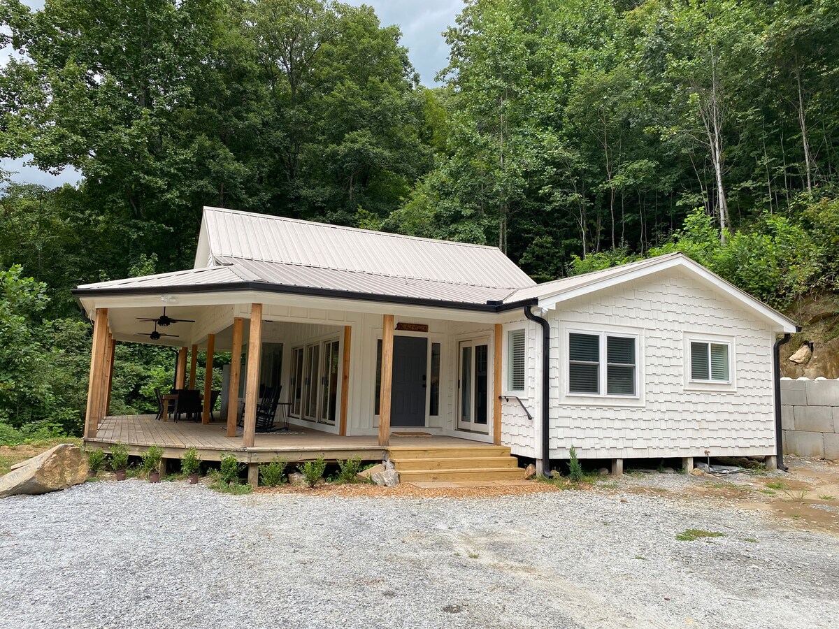 RELAX at Bearfoot Falls! private and peaceful, up in the mountain, nestled amongst national forestry, creeks and water rapids in back yard! Open the windows and listen to the sound of running water! Hiking trails right out of the backyard to beautiful water falls! Indoor fireplace, outdoor gas fire table on screened in porch and outdoor fire pit! NO CHILDREN UNDER 12 no pets, pet fee will be applied for service dogs and only upon review. 25 mins to Highlands!