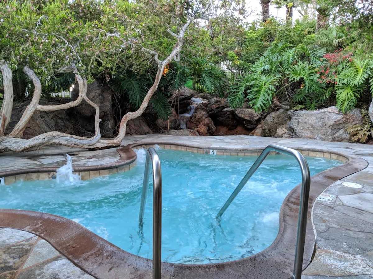 Relax in a freshly renovated 1 bedroom 1 bath condo with garden views. Sandy Feet Retreat has a private entrance "cottage style "with a walkout patio. Fully equipped with free Wifi and cable TV in two rooms. A king sized bed in bedroom, and 2 twin sized Murphy beds in the living room w/ a sleeper sofa. A foldable office desk. The resort has 2 large pools, 3 spas, BBQ area, a gym, sauna, game room, and billiards. It boasts a lush tropical setting with waterfalls, streams, and Koi pond.