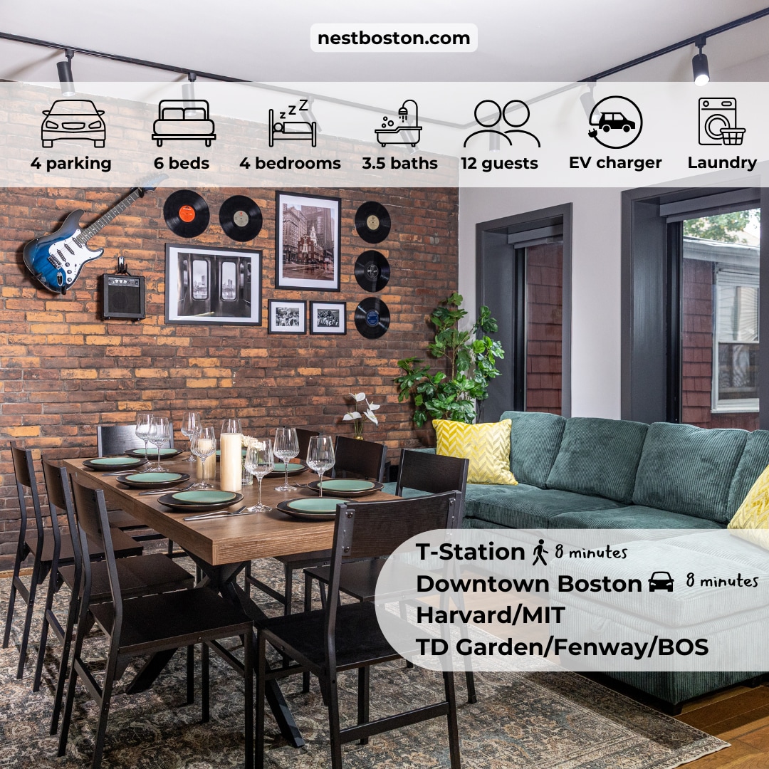 TOP 5%🏆in ALL of BOSTON! Over 95+ 5-Star⭐️ Reviews! Here’s why: Just steps (only 0.17 miles) to the Union Station Green Line, access to Harvard + Boston, yet tucked in a neighborhood. A cozy modern + VERY spacious split home in Somerville MA. 1 FREE covered parking space included. Access to all 3 floors + the basement poker room + games! All the space/amenities you could ask for! NEED MORE SPACE/DATES? Message about 3 other homes/close location ALL TOP 🏆 5% & our Downtown Boston homes!