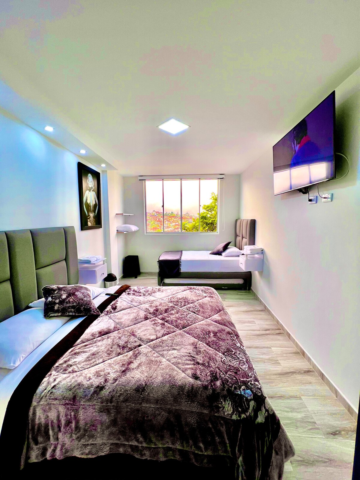 Enjoy easy access to everything from this perfectly located home two blocks from Sonsón's main park. The studio apartment has 2 beds, a kitchen, Wi-Fi, TV, and laundry service. This place is close to everything! Shops, main park, supermarkets, and restaurants.