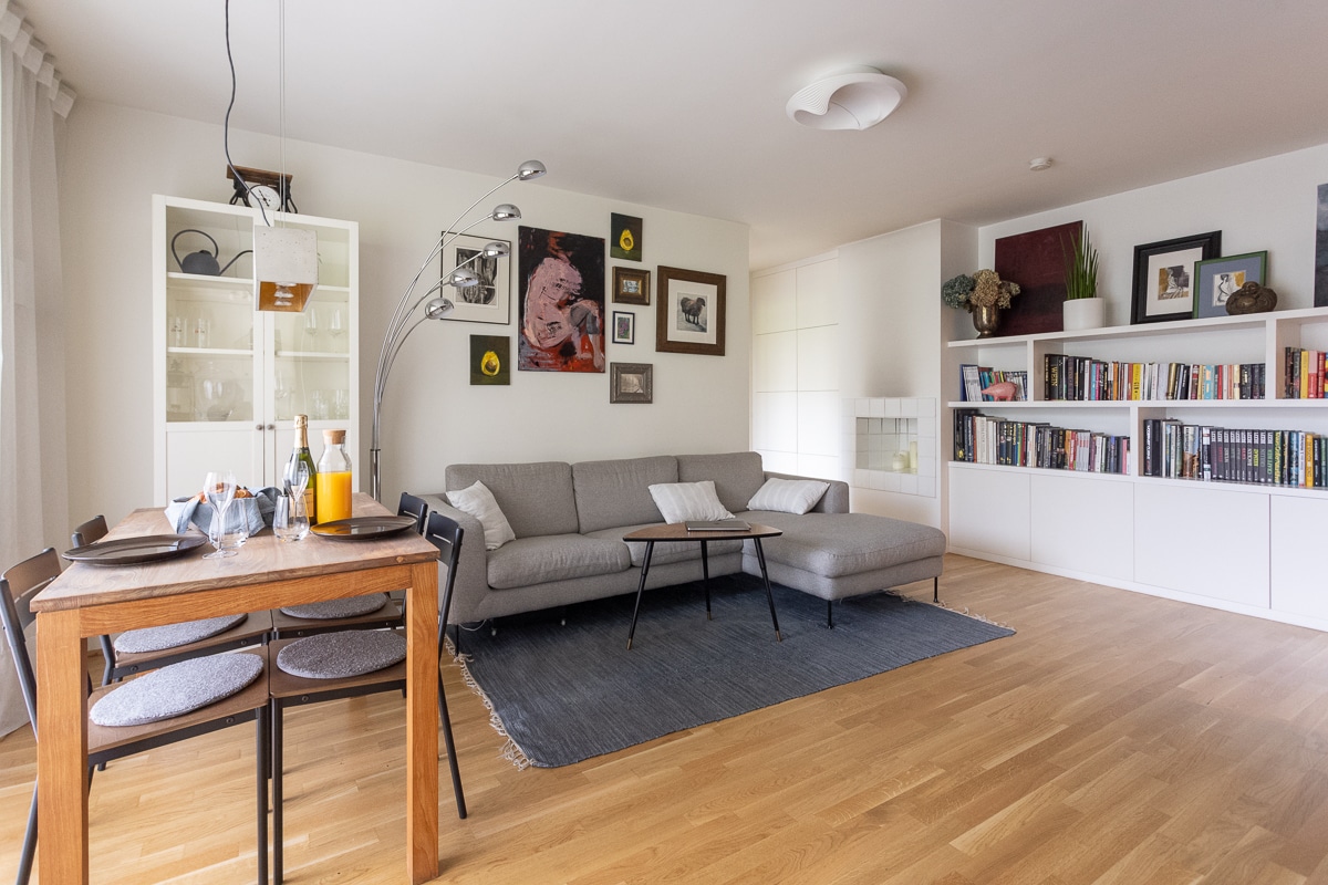 Enjoy a stylish experience at this centrally located place, suited for shorter travelling trips as well as for longer business trips. The apartment features a fully equipped kitchen, a queen size bed, a sofa and a balcony with a nice view to the quiet inner block of this newly built residential building. The apartment doesn’t have a parking spot available, but you can easily move around the city by walk, shared bikes or public transport as there are bus and tram stops closeby the apartment.