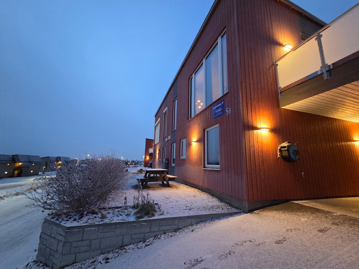 apartment for rent, 2 bedrooms, balcony, most of the amenities and close to both city, grocery stores and outdoor activities, such as hunting and fishing. Free parking. Bus stop just across the road, whether you want to go to the city or airport. I often see the northern lights from the balcony. Hope you will enjoy your stay here. Just message if you have any questions. Check-in and check-out can be flexible. Bedroom 2 has a 120 cm bed, so the apartment is best suited for 3 adults, or 2 adults and 2 children. Welcome😊