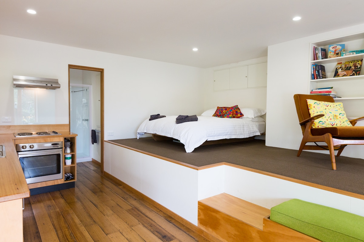 Jan's Studio has a cosy queen sized bed, and a small lounge-kitchen space equipped with everything you need to make your stay comfortable. There is WiFi and off-street parking. The space is a separate dwelling looking onto a beautiful garden. It is set in a peaceful neighbourhood and is a short walk to local parks, cafes, and restaurants. Jan's studio lies at the foot of kunanyi/Mount Wellington, and is less than 3 km to Hobart and Salamanca, with its popular Saturday market.