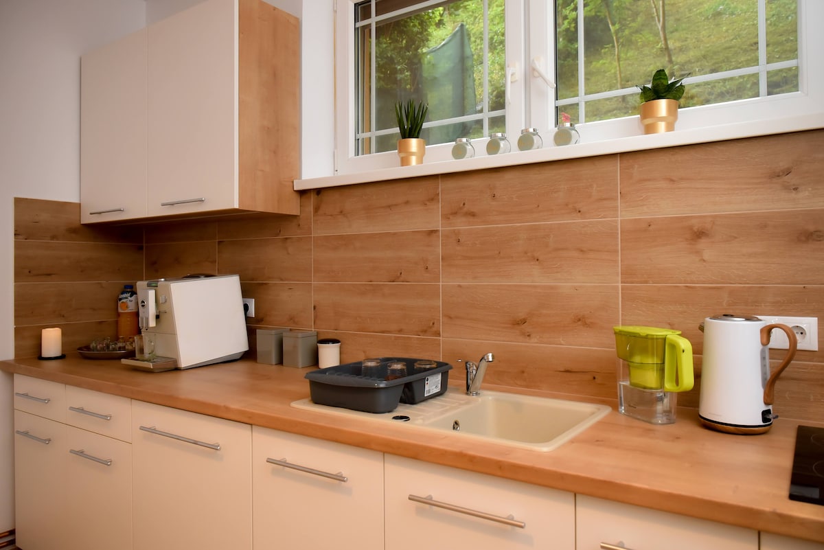 Casa Otto offers free WIFI access, a tastefully decorated 1 bedroom apartment with queen size bed, sofa bed which can be converted in a very comfortable 1 to 2 persons’ bed, large flat TV in the bedroom and another in the kitchen with cable channels included. Casa’s Otto kitchen is fully equipped kitchen fitted with solid walnut life edge tops with a very cozy atmosphere, electrical stove top, electrical oven, refrigerator, washer and dryer in one and all kitchen accessories. 24/7 -Self Check-In