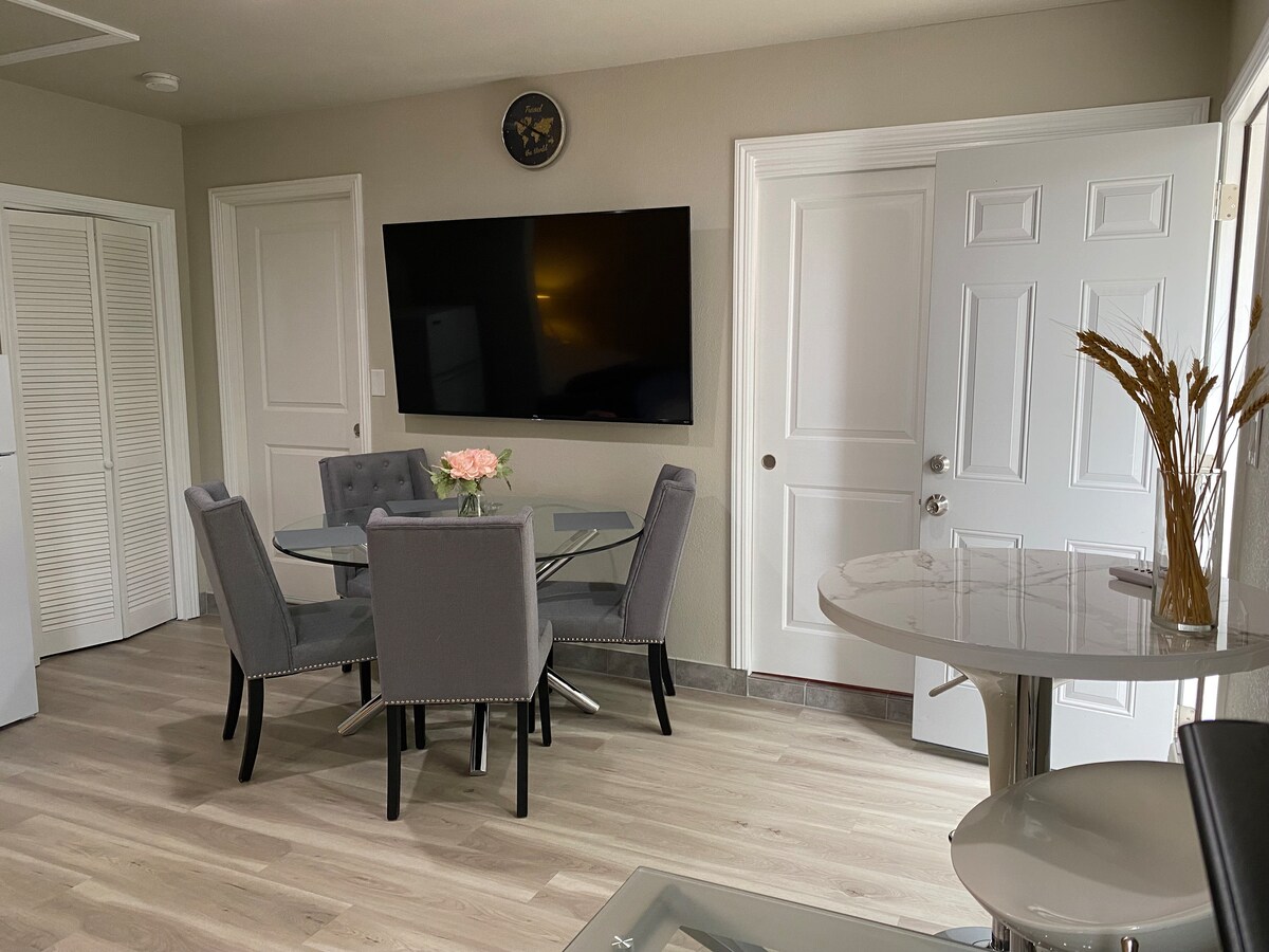 A beautiful and modern studio with a private entrance. Located just 5 minutes from the airport and 8 minutes from the strip !! It features a spacious one bedroom with a walk-in closet and bathroom: a fully equipped kitchen and a cozy living room. The studio has been fully renovated, and it feels and looks very modern. Perfect for those who want to be close to the fun but also have a place to relax and unwind.
