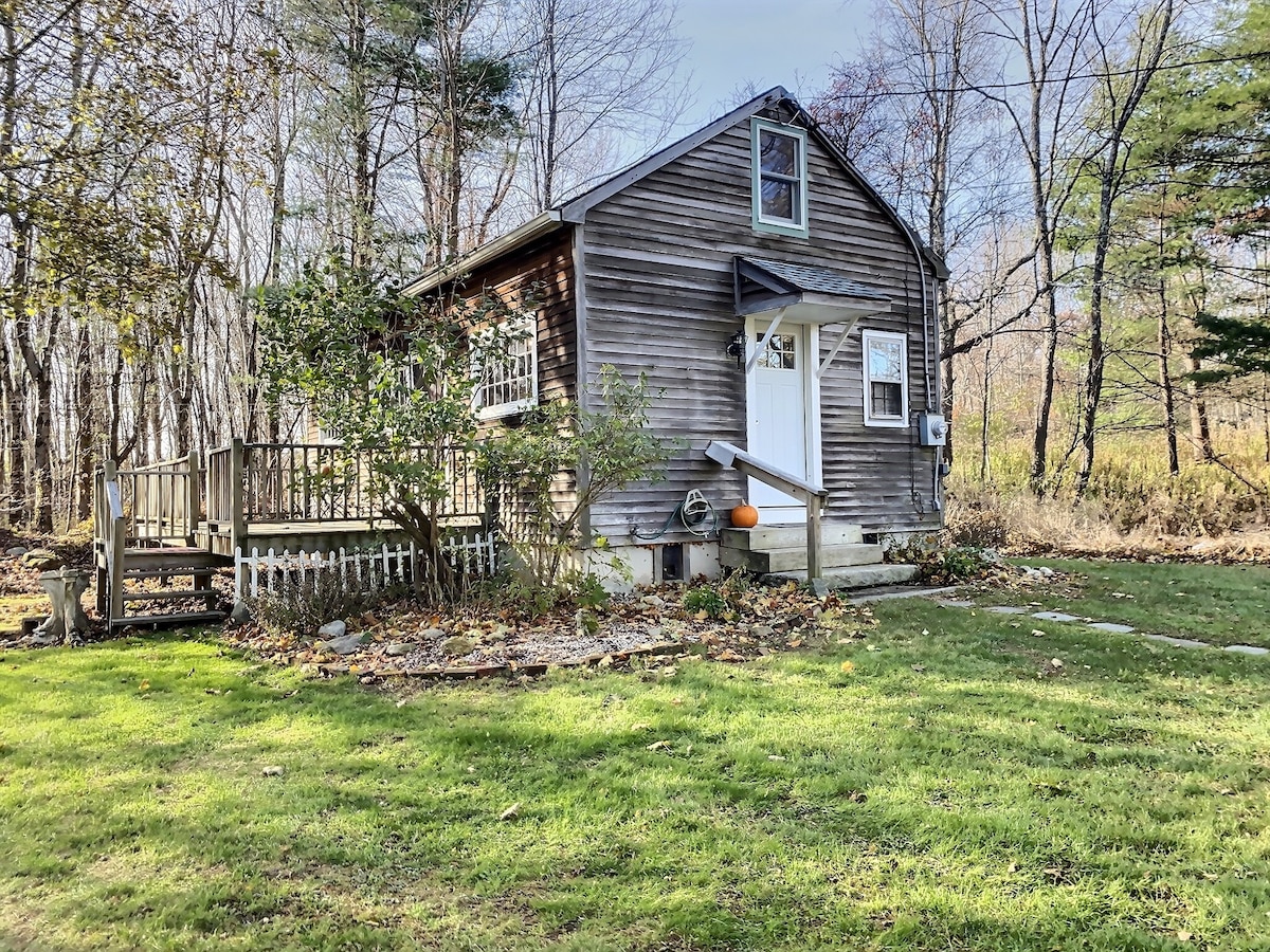 Enjoy a rustic wooded retreat up in the cool Berkshire hills, surrounded by nature and wildlife, in a quiet, secluded, safe and peaceful setting, yet very close to top-notch cultural and recreational attractions. Nearby trails, pristine lakes and woods offer hiking, swimming and cycling. Experience the absence of mechanical sounds and the centering presence of rustling leaves, birdsong, and owls hooting at night. Behold a star-studded black night sky without artificial light. Breakfast included!