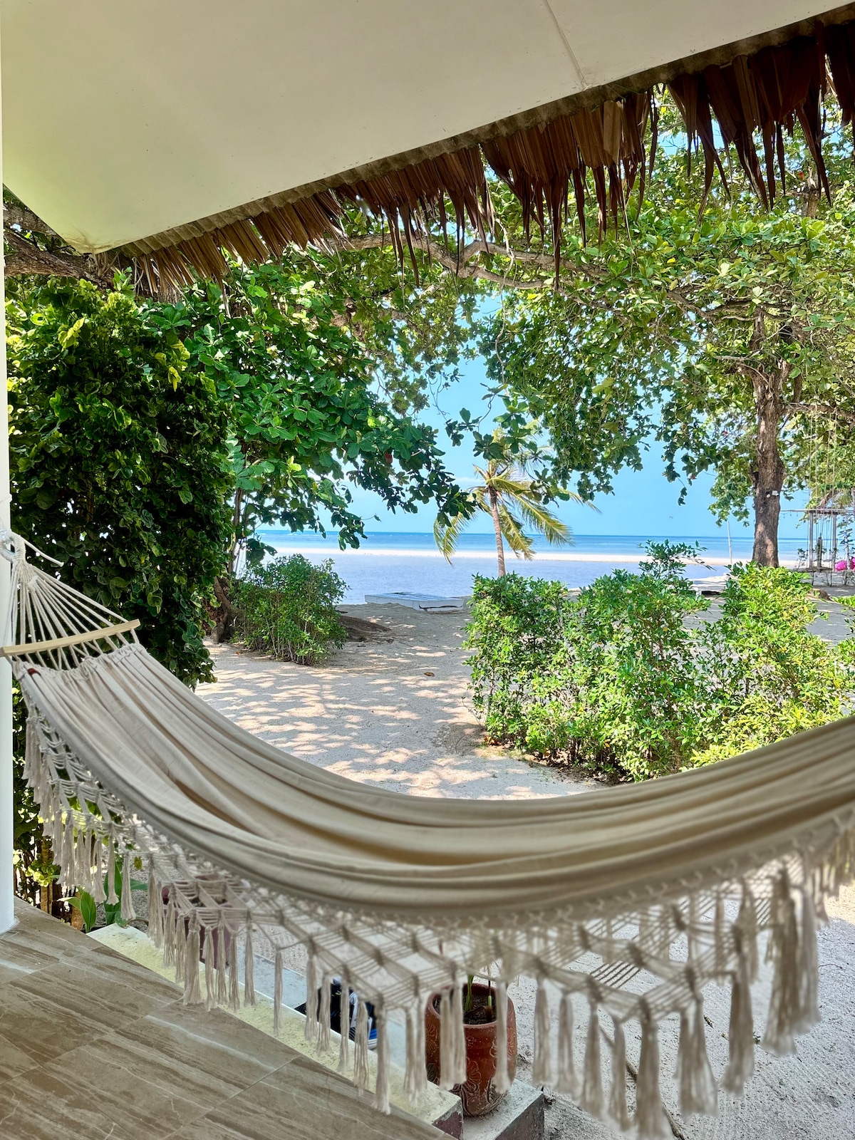 Unique rare bungalow in KOH PHANGAN Conciergerie Services Right on a very special beach, Beautiful private garden, Quiet and near everything, 2 bedrooms, 2 aircon, Perfect location, 5 minutes from supermarkets, 7eleven, shopping, yoga, restaurants, bars and other activities.. This bungalow is perfect for group of friends or family that are looking for calm on the beach with being close to everything and close to the night life.. Our pleasure to welcome you there 🙏🏽