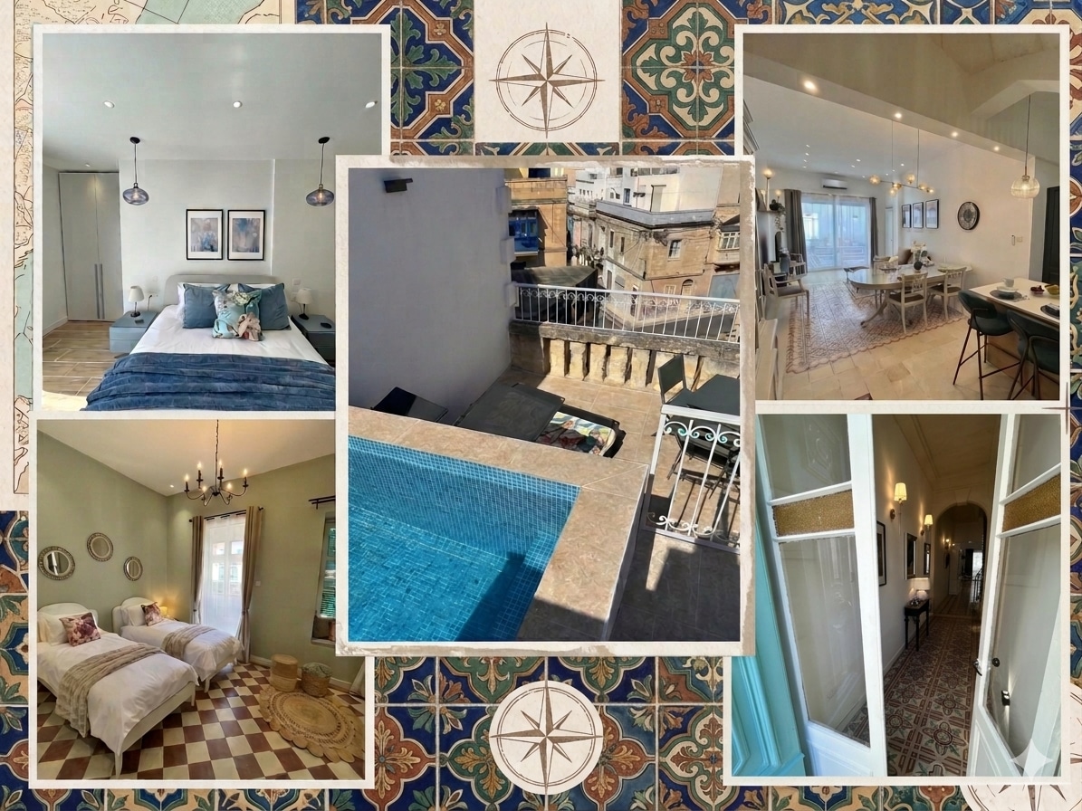 Enjoy a seamless stay with our dedicated Concierge Service. This 150 m² designer penthouse features a 55 m² terrace where open-air living meets Mediterranean calm. A heated plunge pool and sweeping Valletta views make it ideal for romantic escapes or creative stays. Flow between indoor serenity and outdoor beauty in this exclusive sanctuary, just steps from everything. 🏊 Heated pool 27°C 👶 Baby essentials — complimentary on request 🅿️ Parking — subject to availability