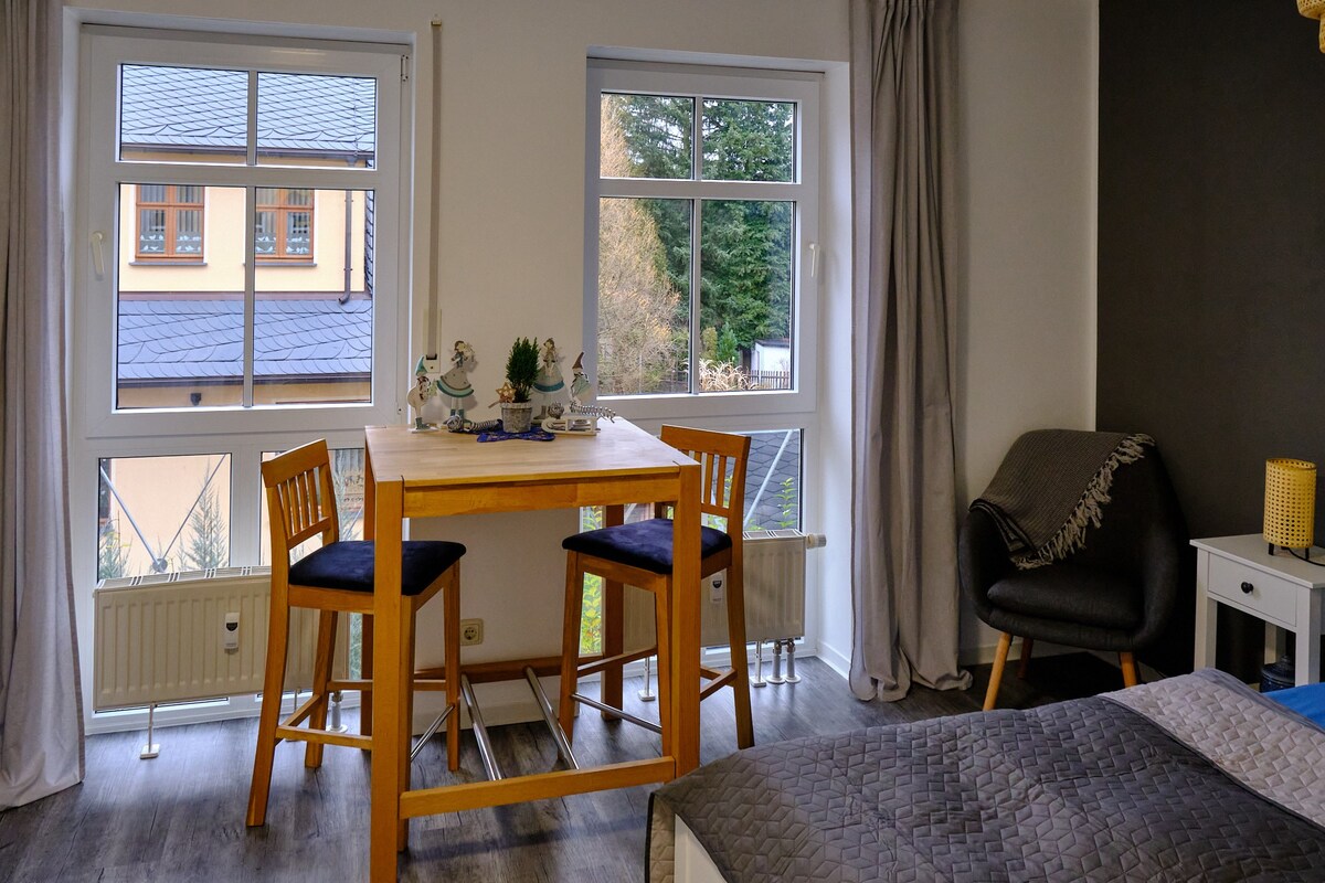 ★ Please read the listing completely before making an inquiry ★ In our house there is a lovingly designed apartment in the basement, suitable for 3-4 people. We live on the outskirts of Hohenstein-Ernstthal in a small residential area. The city center can be reached in 15 minutes on foot.