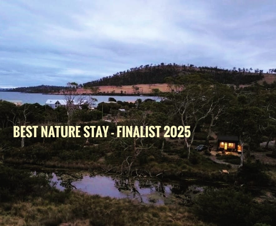 Experience the feeling of calm when you turn onto the winding private road that takes you to The Hide. Surrounded by forest, and set on the waterfront, the Hide provides an elegant refuge for couples. In a national park like setting and situated centrally, it is the perfect base for exploring popular Bruny Island. With so much to do on the property, as well as wider afield, we recommend a 2-3 night stay if you can fit it into your schedule.