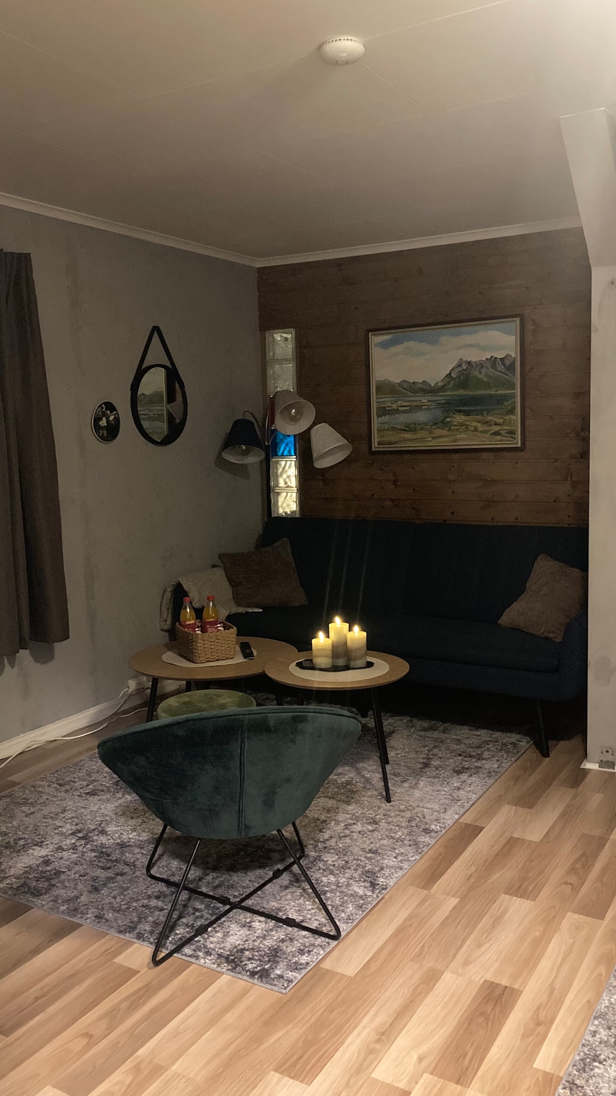 Welcome to Laaven! Cozy apartment on the second floor in a garage that is built in classic northern Norwegian barn style. The place is located in quiet surroundings in the countryside, just off Kabelvåg in Lofoten. The apartment is rustically decorated and has all the amenities for a comfortable stay. There is private parking on site and the entrance is private and shielded at the back of the building. There is a small private outdoor area at the entrance. Places nearby Svolvær 9 km. Henningsvær 16 km. Kabelvåg 5 km.