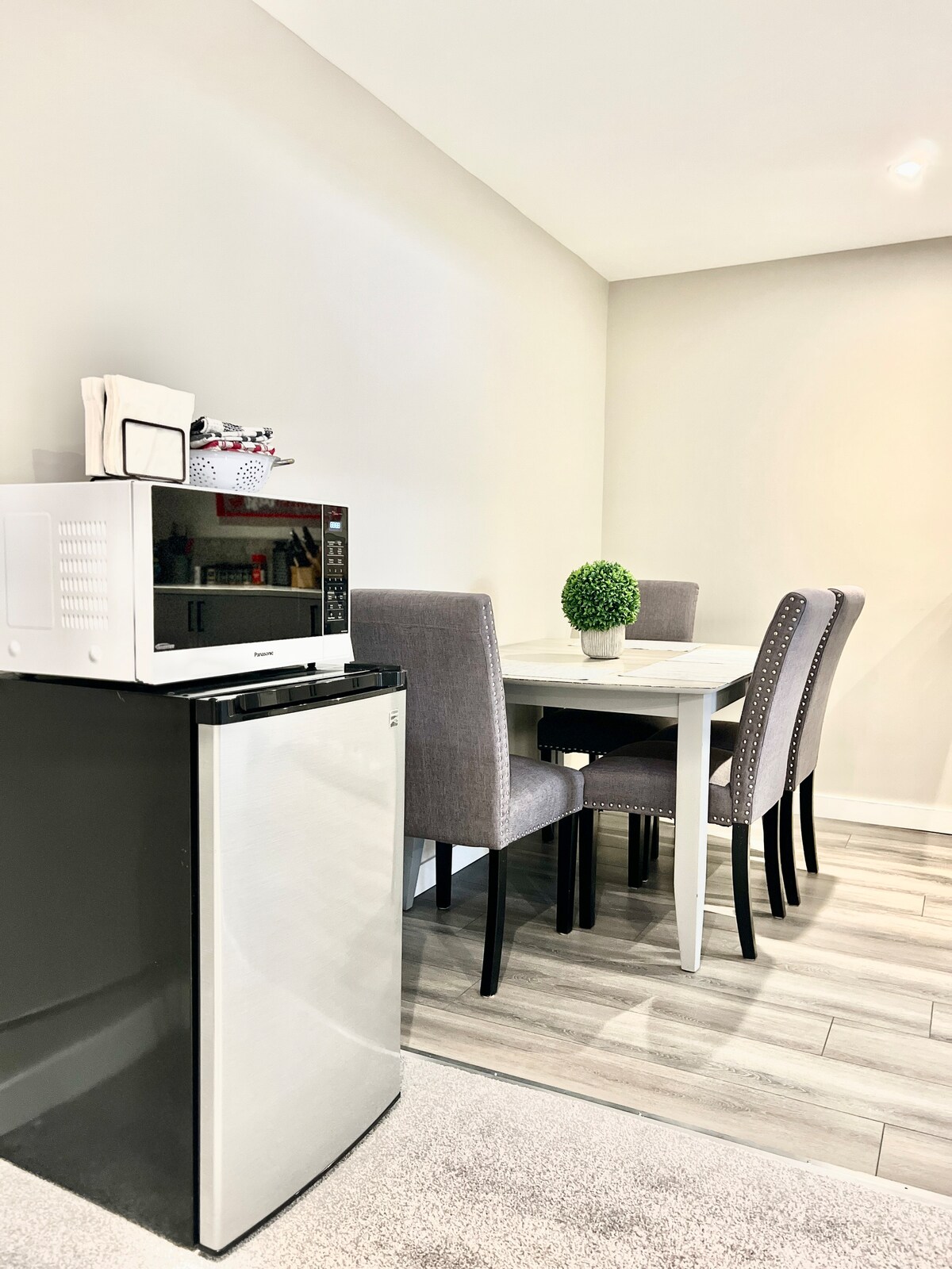 Enjoy comfort and convenience in this brand-new suite in North Edmonton. Just 5 minutes from the Anthony Henday Highway and close to downtown and Londonderry Mall. This suite features a kitchenette with an air fryer, toaster, electric cooktop, and coffee bar. Relax with Roku streaming on the TV and stay connected with Wi-Fi. Enjoy the backyard with a BBQ and firepit. Relaxing spot for anyone coming into town for work. Passcode entry ensures privacy. Free Parking with RV Parking available.